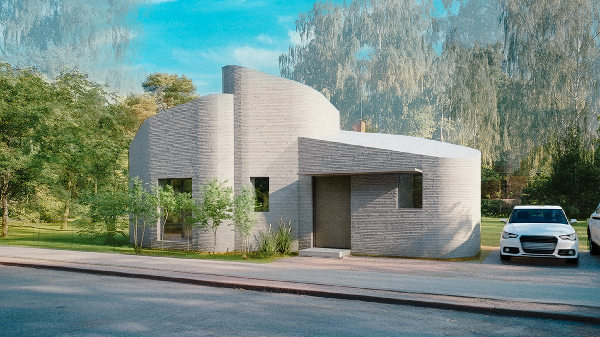 民間企業が主催する3Dプリンター住宅の設計コンペへの提案。3D プリンターの積層という原初的な造形操作を用いた塊のデザイン。地層が隆起し“生え出す” ように、3 つの房状ボリュームがゆるやかに連なり、内部では連続曲面が住まい手を包み込む、洞窟的な一室空間を構成する。